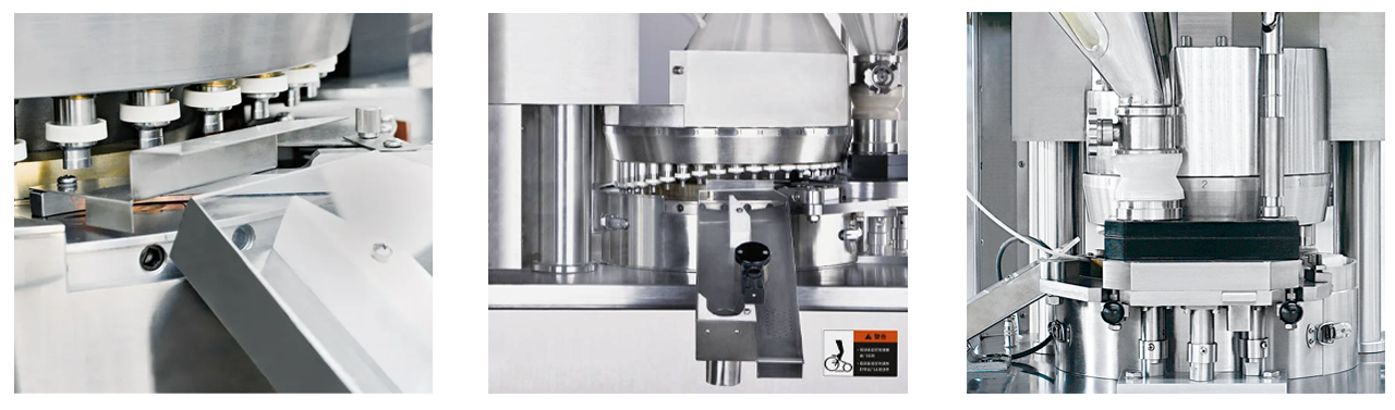 Những đặc điểm chính 1. Có khả năng ép các nguyên liệu thô như bột thuốc thành dạng viên có hình dạng, trọng lượng và độ cứng phù hợp, đảm bảo chất lượng và độ ổn định của thuốc. 2. Lỗ đục lỗ được trang bị thiết bị chống thấm dầu và chống bụi được th